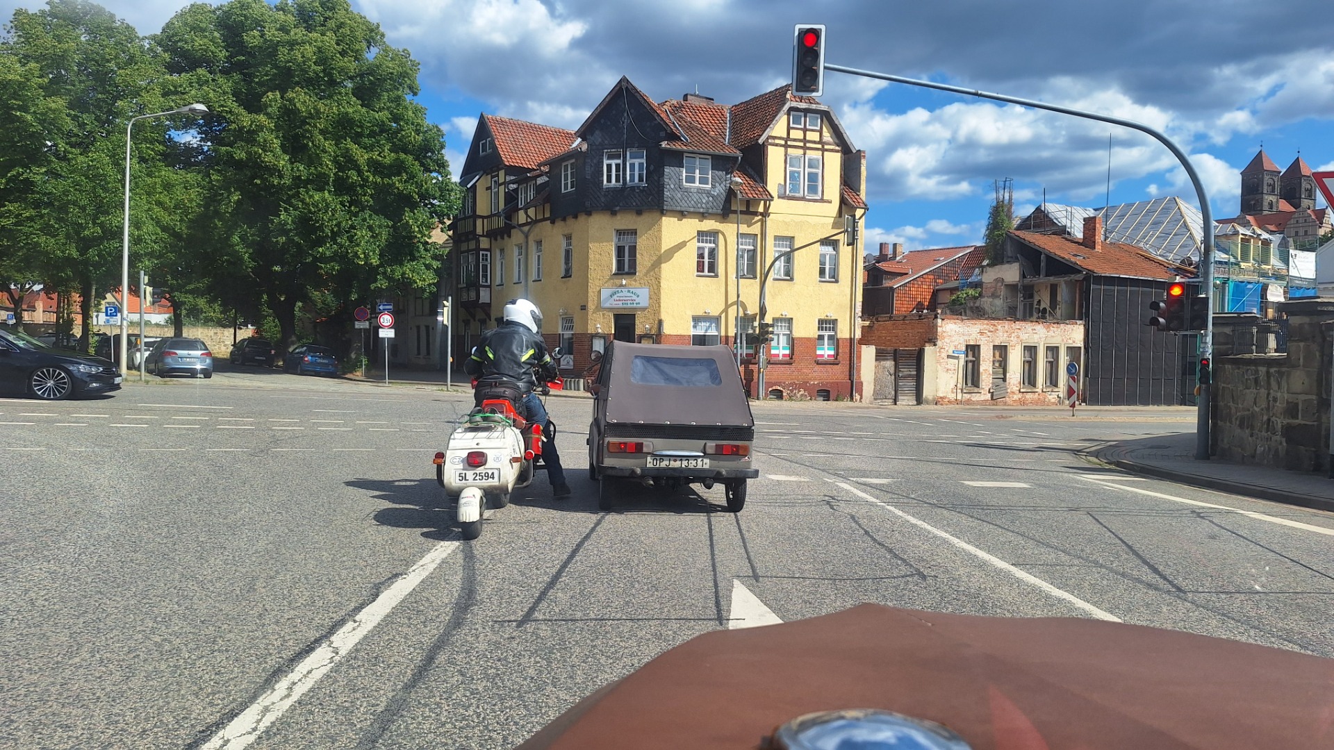 Cesta je dlouhá a rovinná, ale je na co koukat. Krásné kostely a veliké staré baráky v každé druhé vesnici. Na poslední chvíli upravujeme navigaci, googl mi hlásí, že do Lipska nesmíme. Neplníme euro normu (vztahuje se jen na auta) ale to Alex dle techničáku je. Trochu zdržení, ale kolem 20 hodiny už vjíždíme do kempu Natur Campingpaltz. Kempů tady moc není, tak jsme rádi že jsme našli a to, že už tu nebyla obsluha a nebylo komu zaplatit jen do plusu :) . Dáváme večerní koupačku v rybníku a u pivečka rekapitulujeme celou cestu. Ráno se musíme rozdělit a společný trip nám končí.